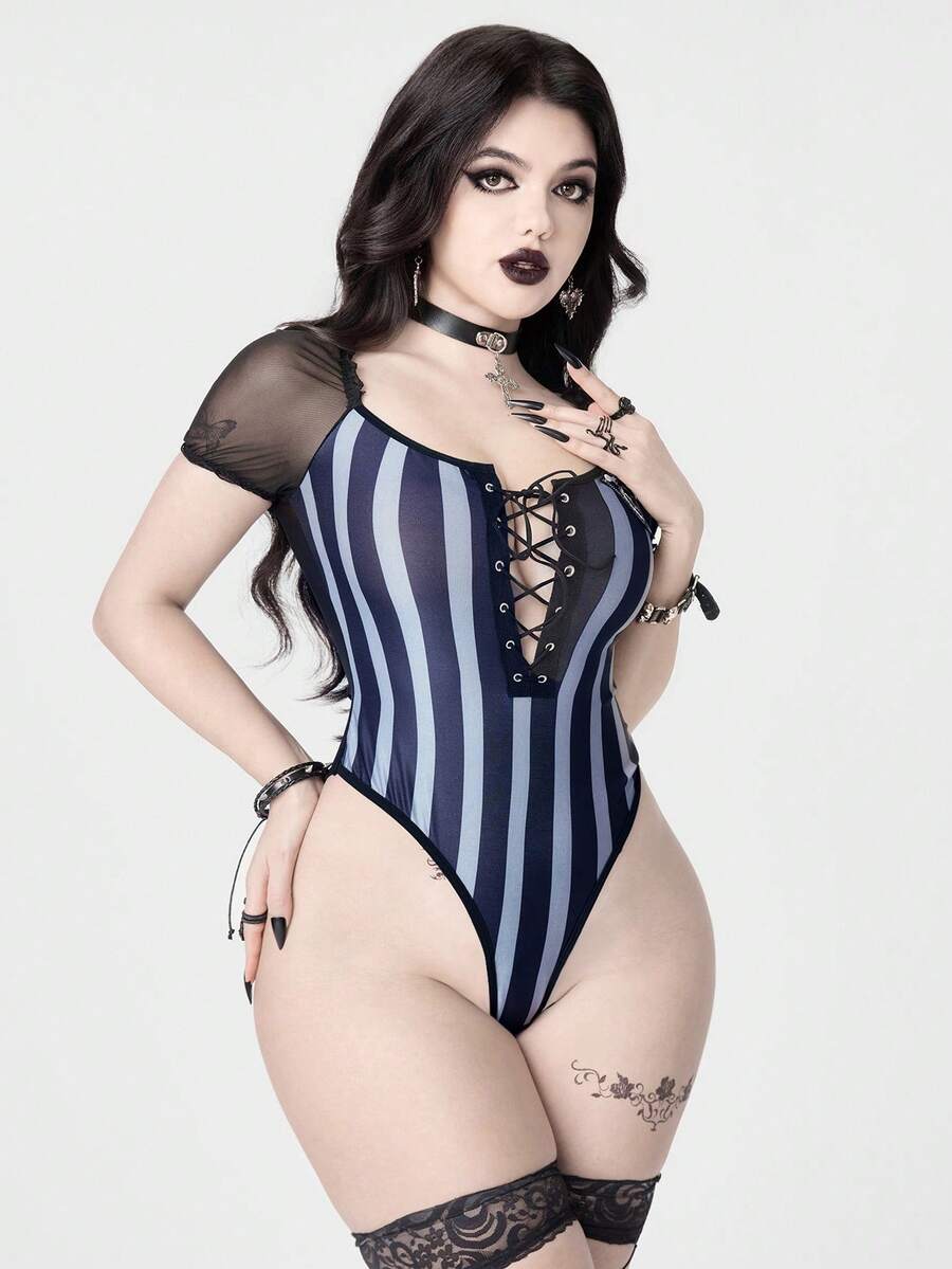ROMWE Avant Wednesday Halloween Character Puff Sleeve Bodysuit