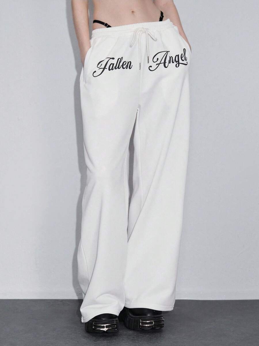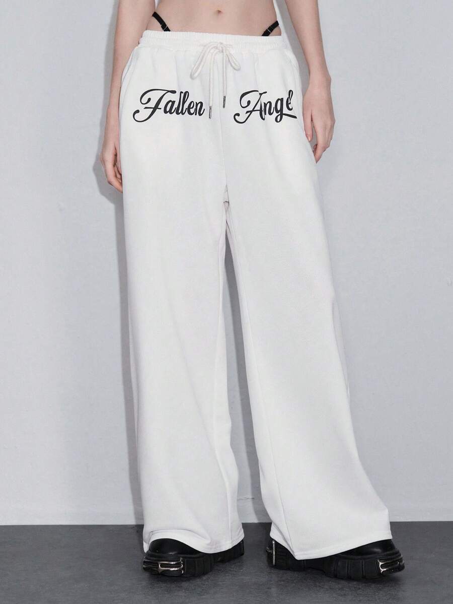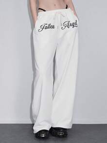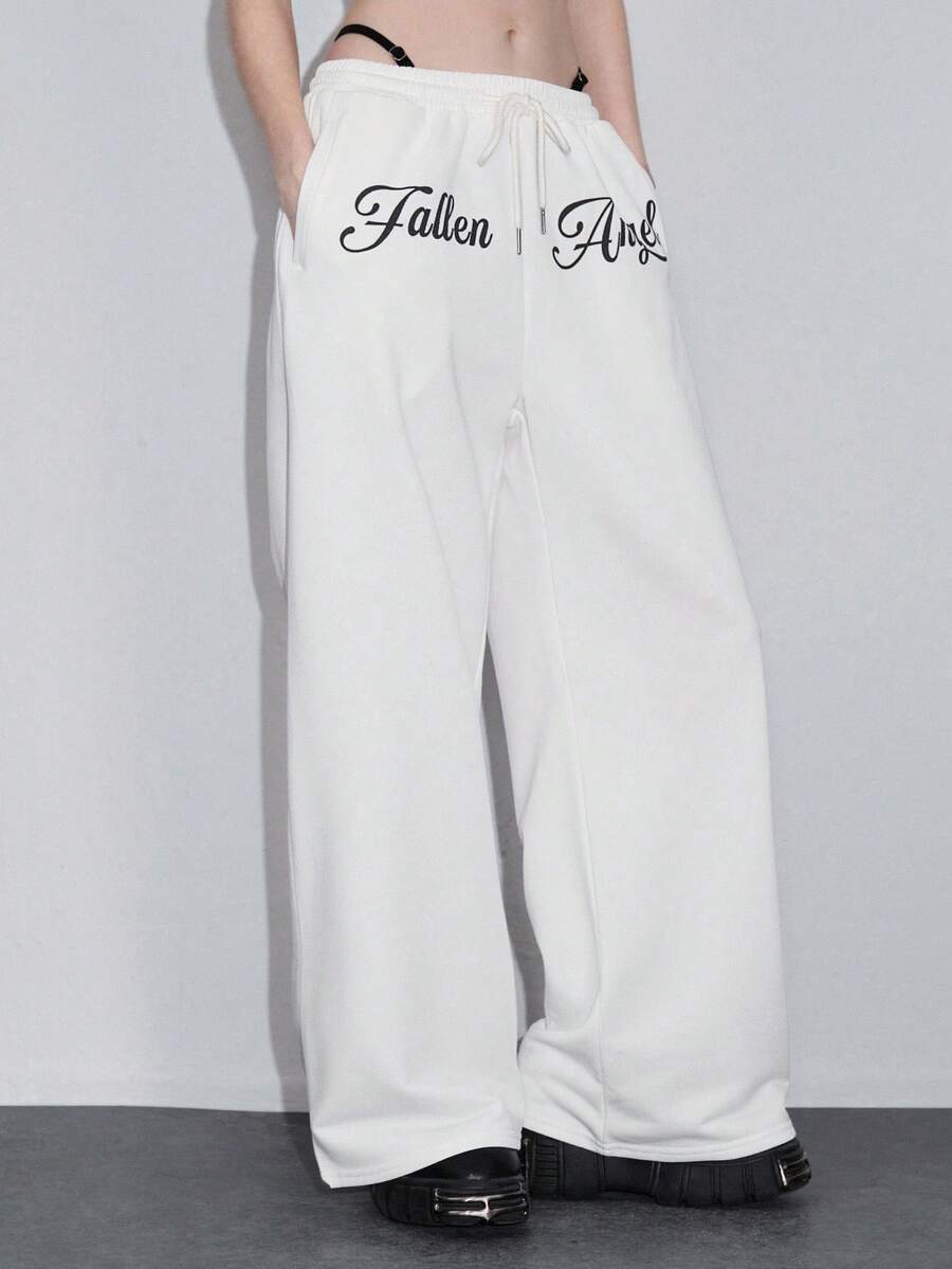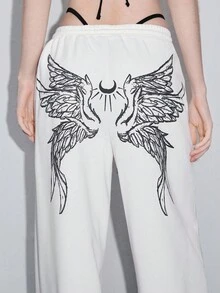 ROMWE Avant Women's Grunge Girl Wing Print Casual Pants