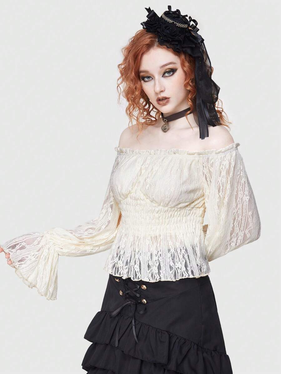 ROMWE Avant Women's Lace Off Shoulder Shirred Blouse