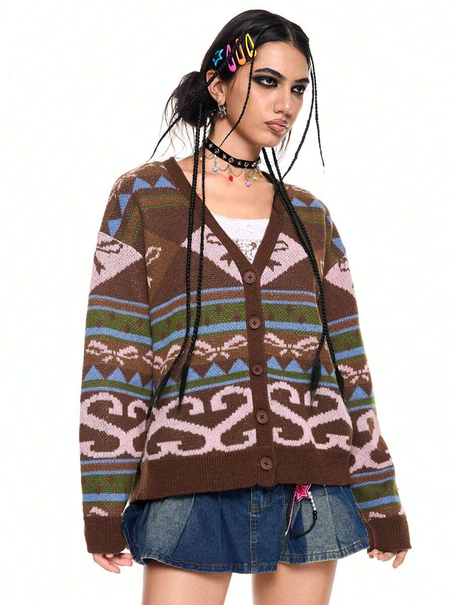 ROMWE Avant Women's Vintage Style Heart & Bow Buttons Cardigan Sweater