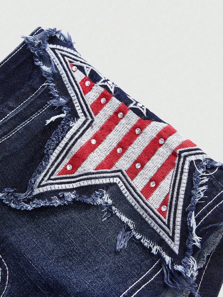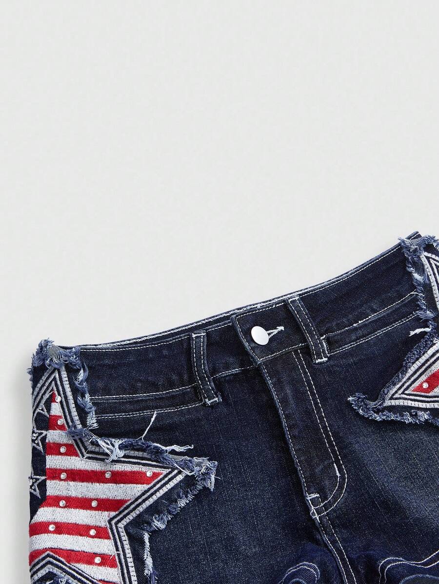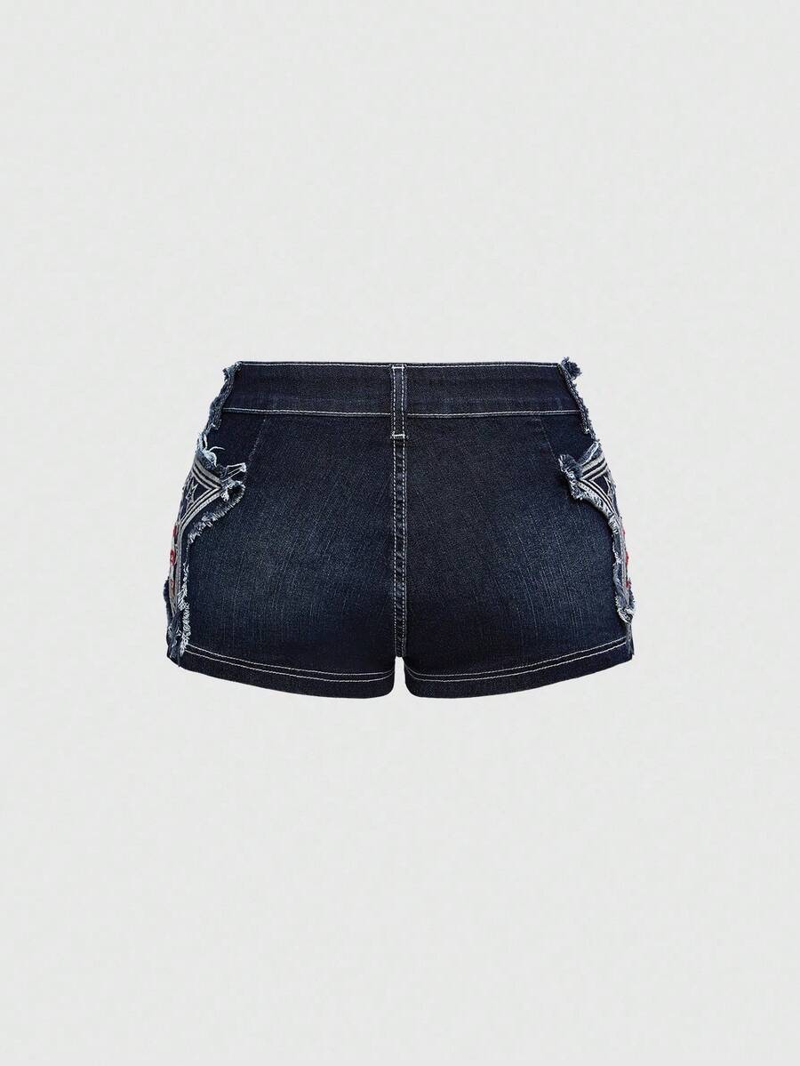 ROMWE Avant Women's Y2K Indie Bandana Style Low Waist Denim Shorts With Side Stars Graphic