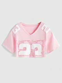 ROMWE Avant Women's Y2K Lace Bra Graphic V-Neck T-Shirt, Sexy & Sensual