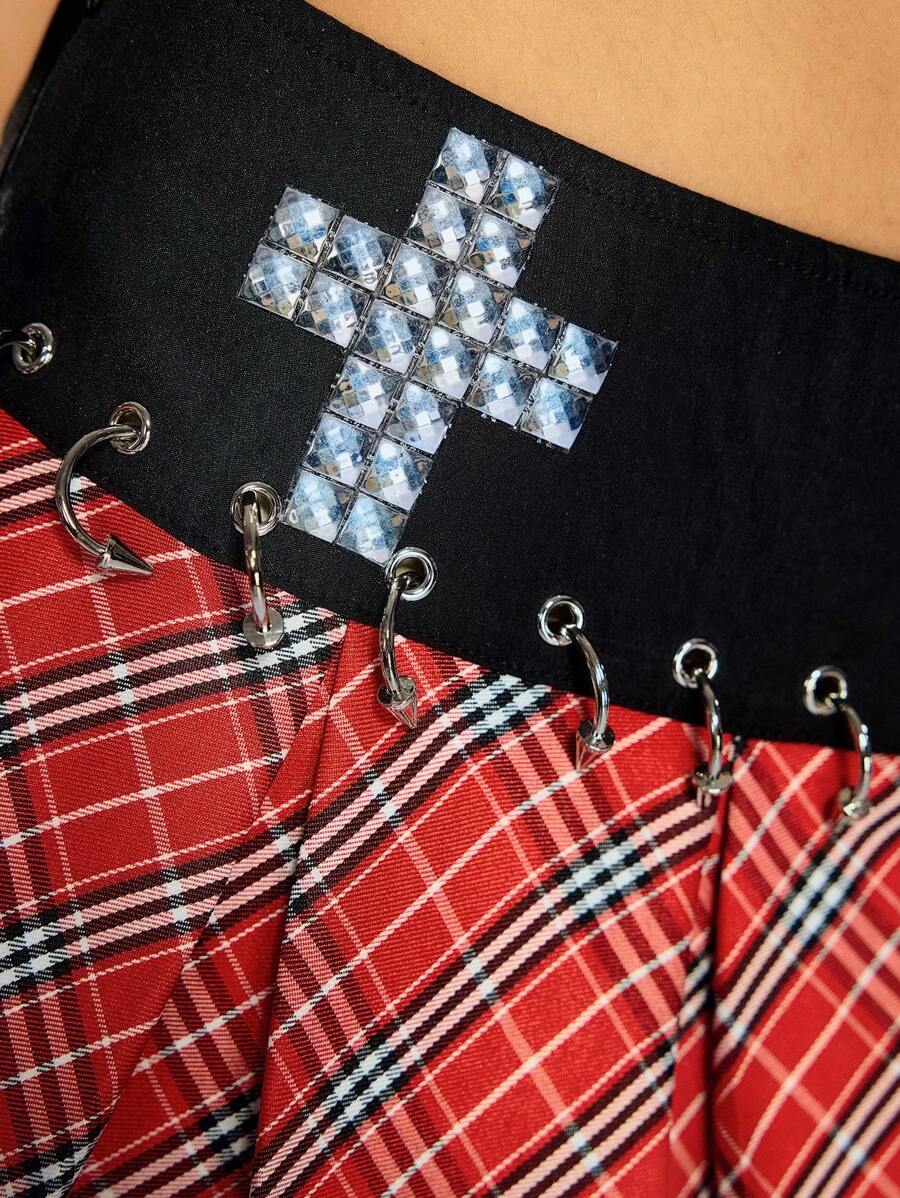 ROMWE Avant Y2K Punk Pleated Mini Skirt, Low Waist Super Short For Women, Music Festival Style