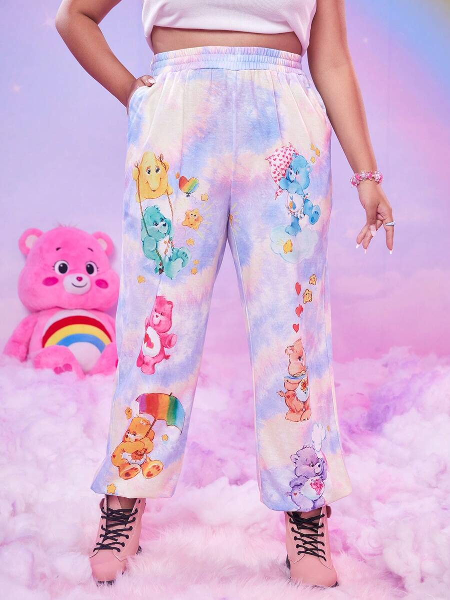 ROMWE X Care Bears Plus Tie Dye Cartoon Graphic Pants