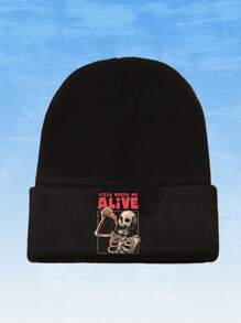 Eduely Skeleton & Slogan Graphic Cuff Beanie