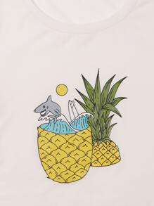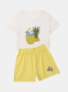 Olinevod Pineapple & Shark Graphic Tee & Shorts