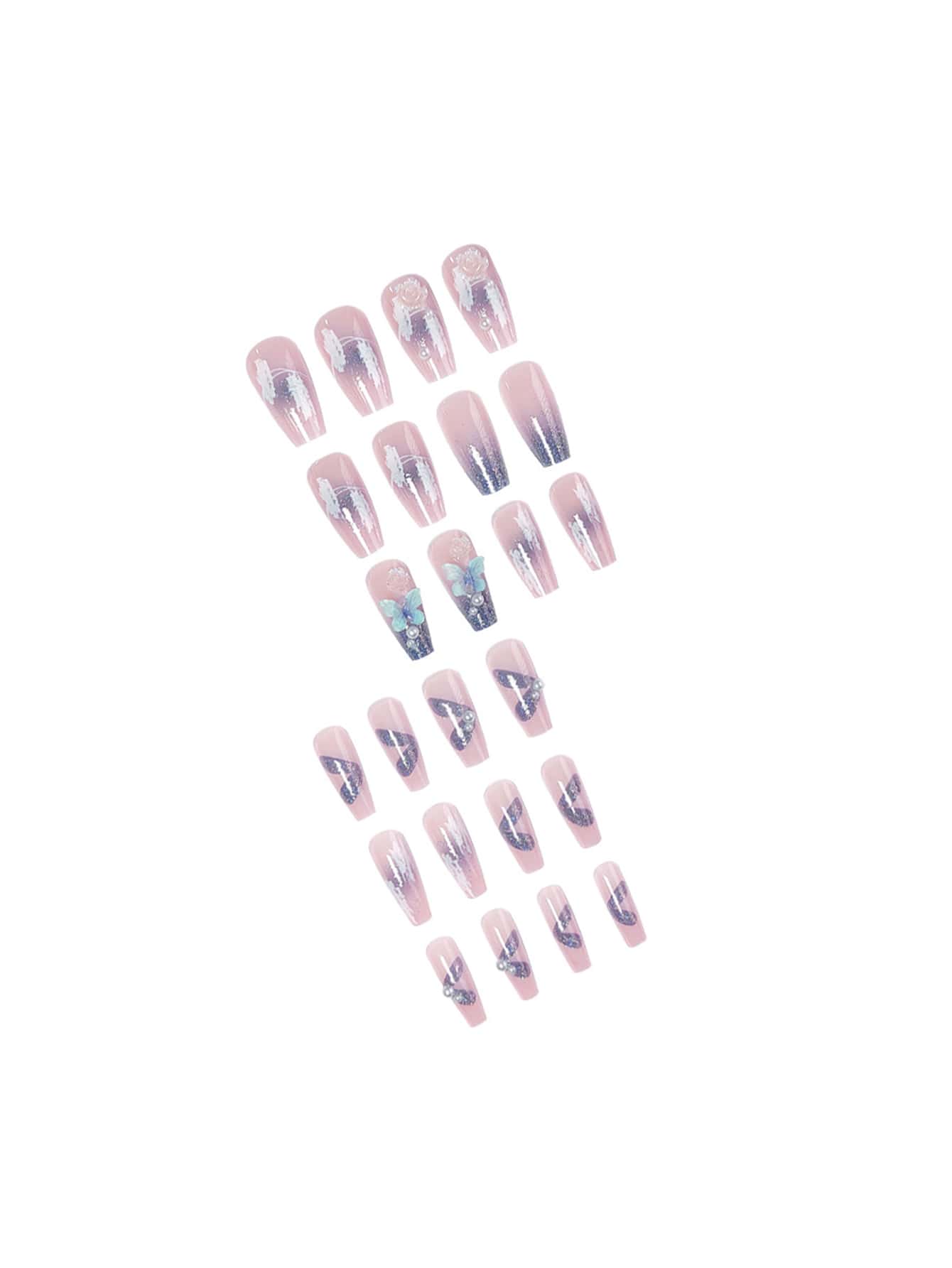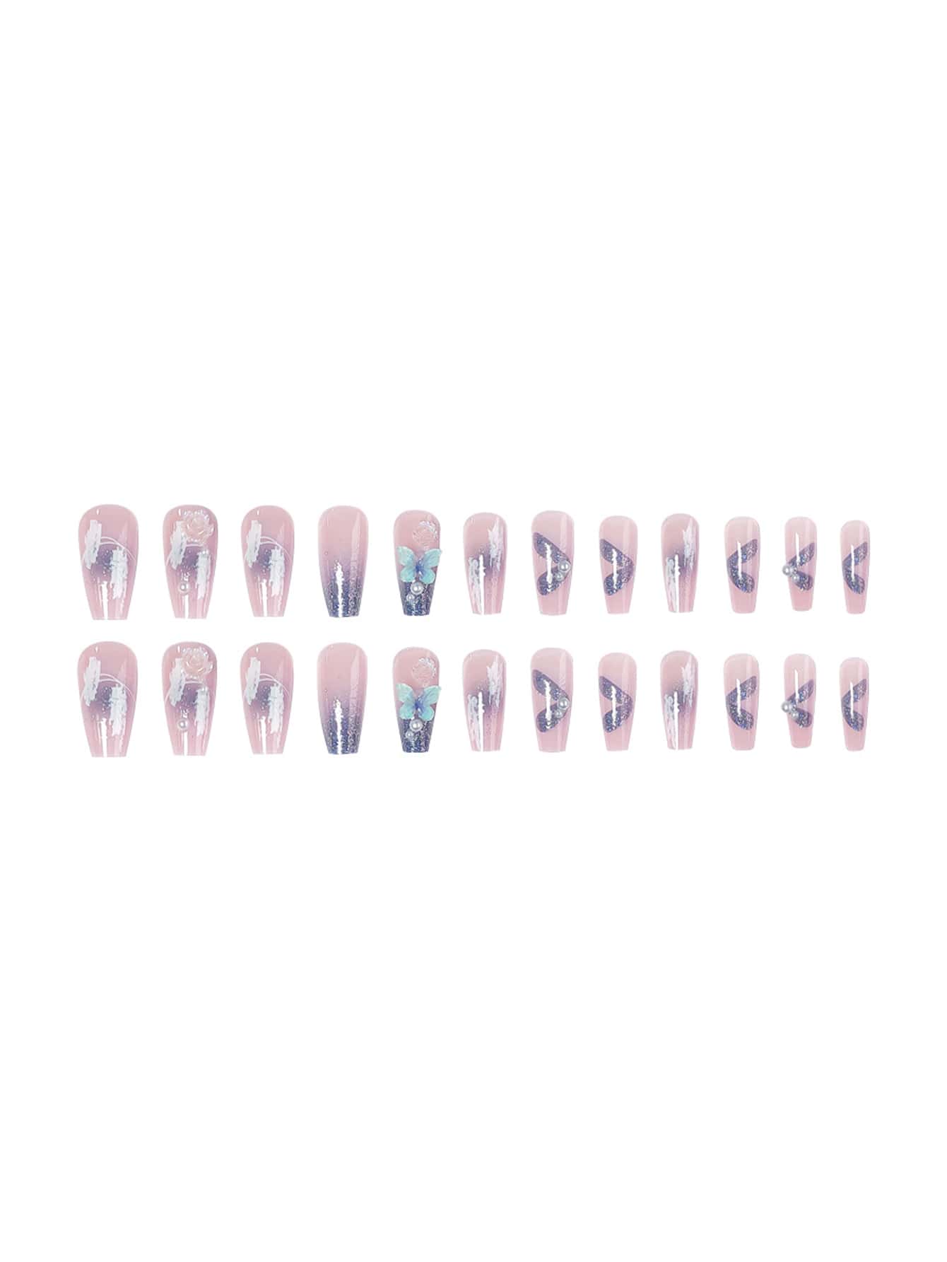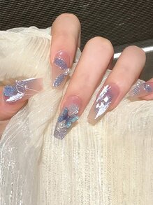Fairycore 24pcs Coffin 3D Butterfly Decor Fake Nail & 1sheet Tape