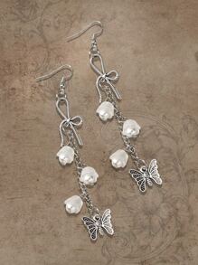 Fairycore 2pcs Butterfly & Flower Decor Earrings