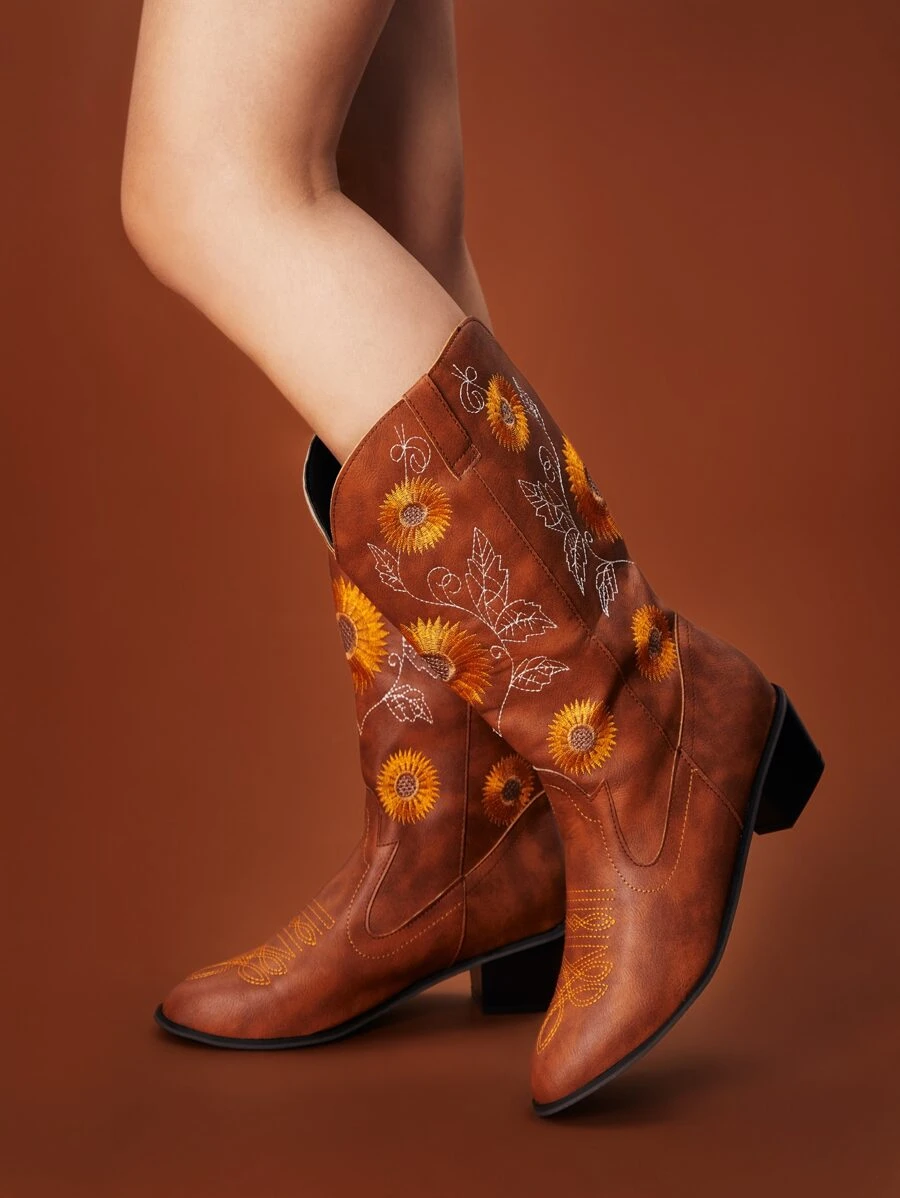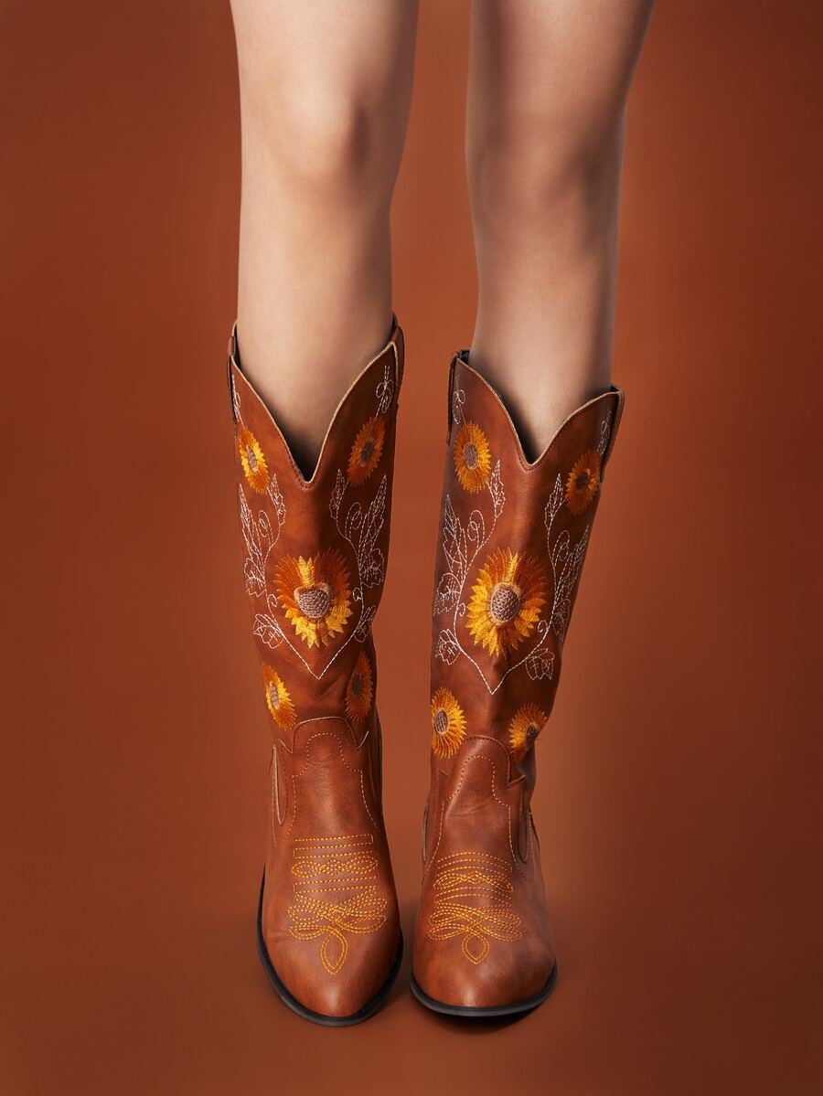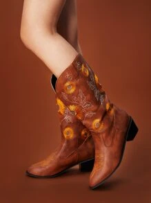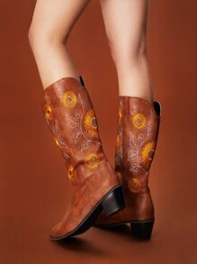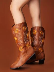 Goth Cowgirl Flower Graphic Western Boots, Cowboy Boots For Women