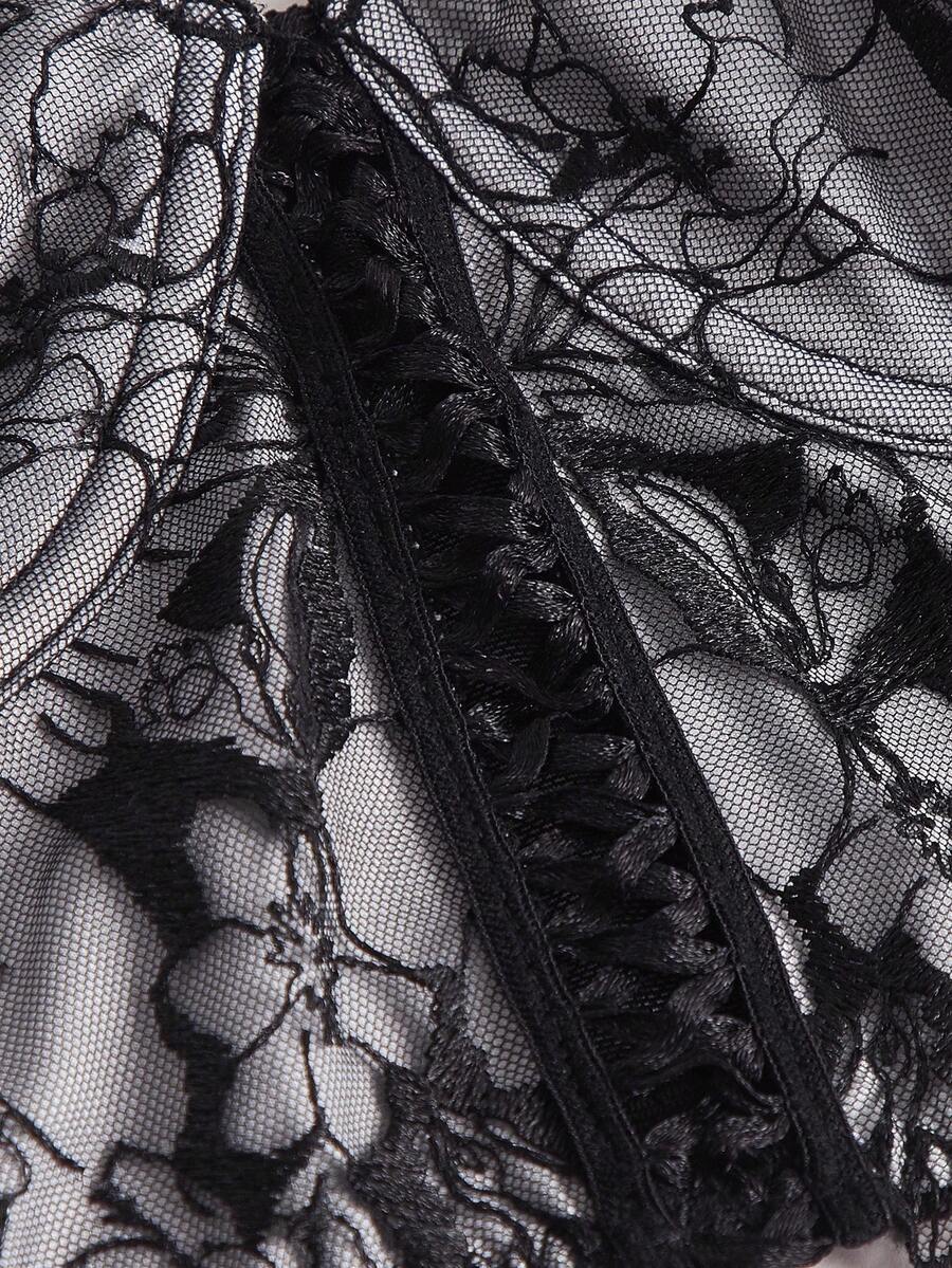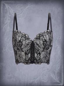 Goth Floral Lace Up Front Lace Cami Bra