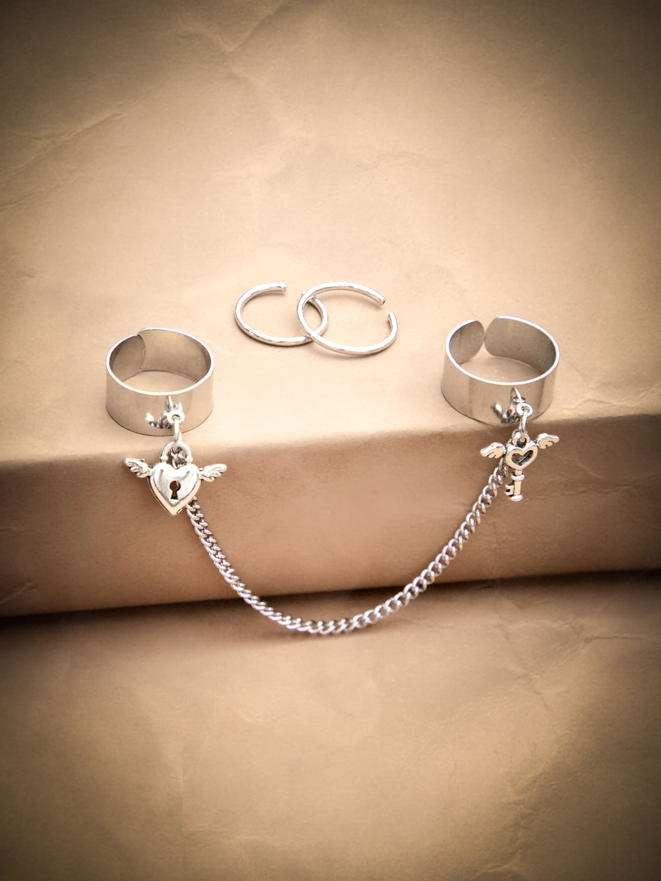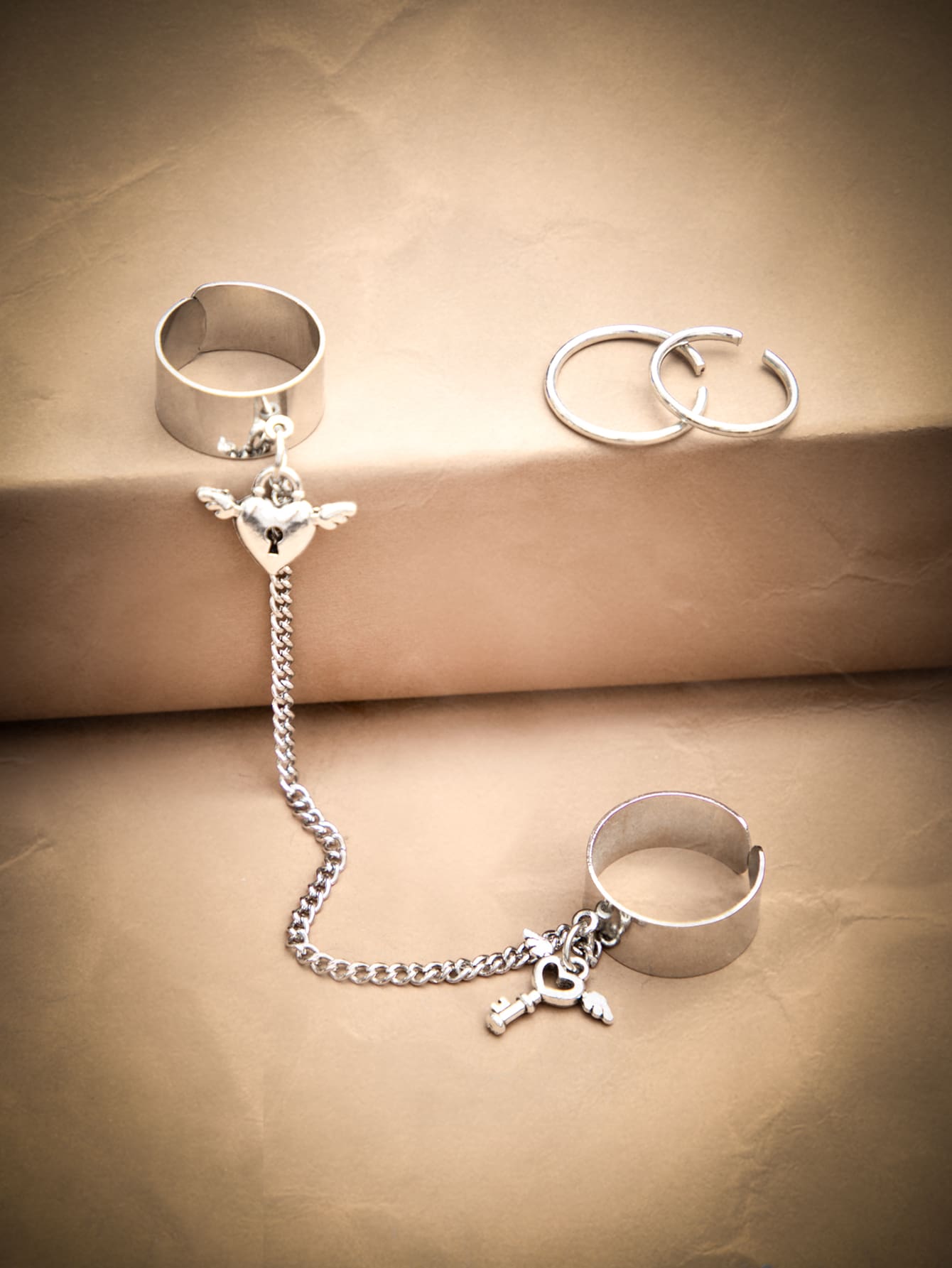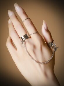Grunge Punk 3pcs Heart Detail Ring