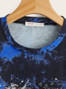 Grunge Punk Skull & Floral Graphic Tie Dye Drop Shoulder Tee