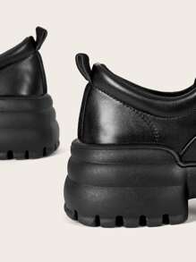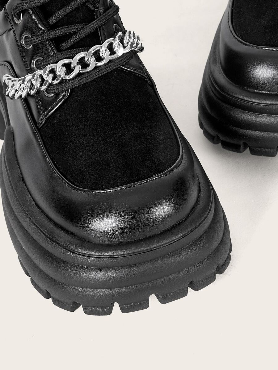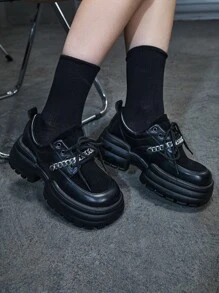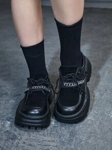 Grunge Punk Women Chain Decor Lace-up Front Flatform Punk Black Oxford Shoes