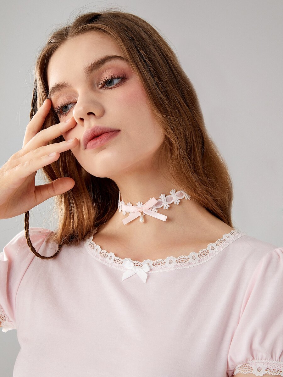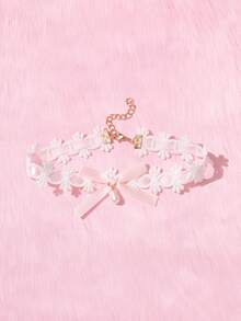 Kawaii 1pc Casual Snowflake & Faux Pearl Decor Choker For Women For Daily Decoration