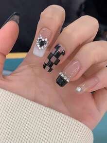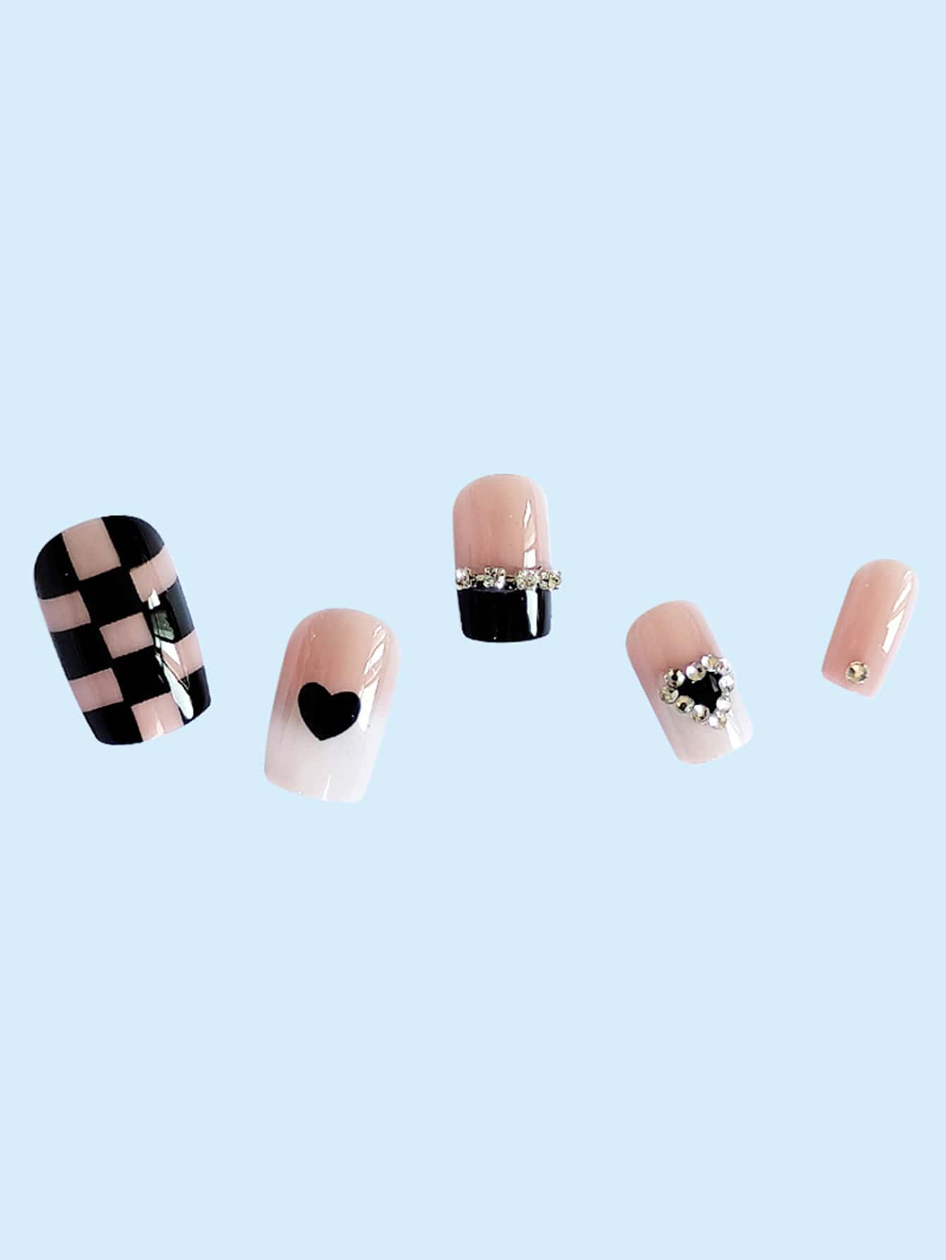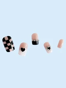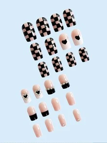 Kawaii 24pcs Square 3D Heart Decor Fake Nail & 1sheet Tape