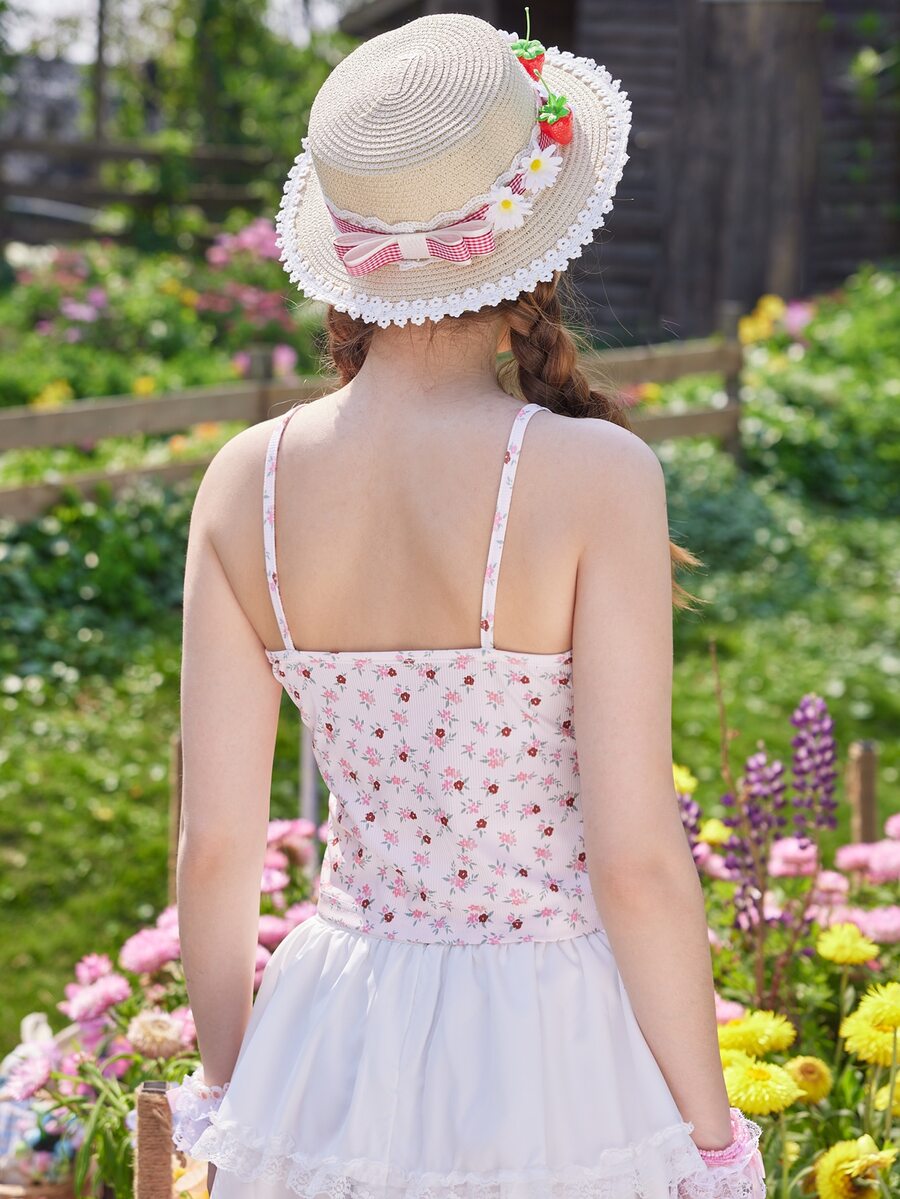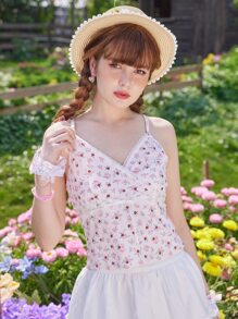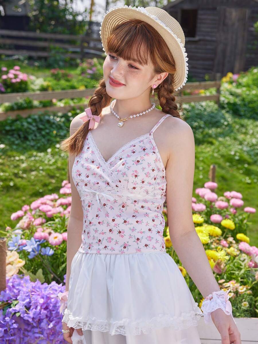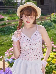 Kawaii Ditsy Floral Contrast Lace Cami Top