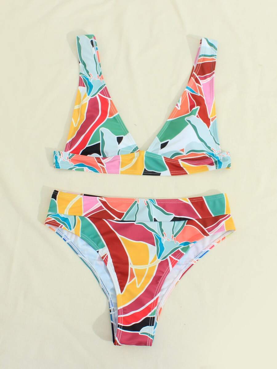 Random Color Block V Neck Bikini Set, For Summer Beach Vacation
