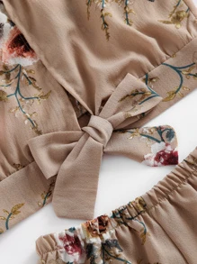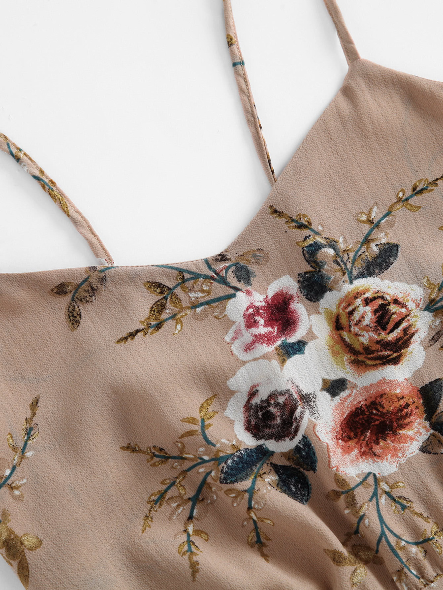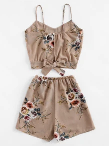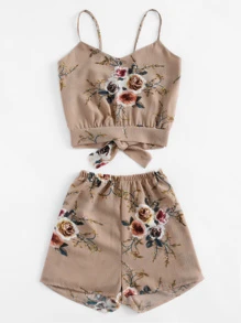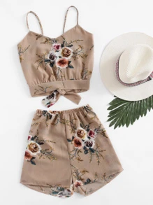 Random Split Self Tie Back Crop Cami Top With Shorts