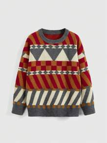 Retro Hippie Style Geometric Pattern Loose Pullover Women Sweater