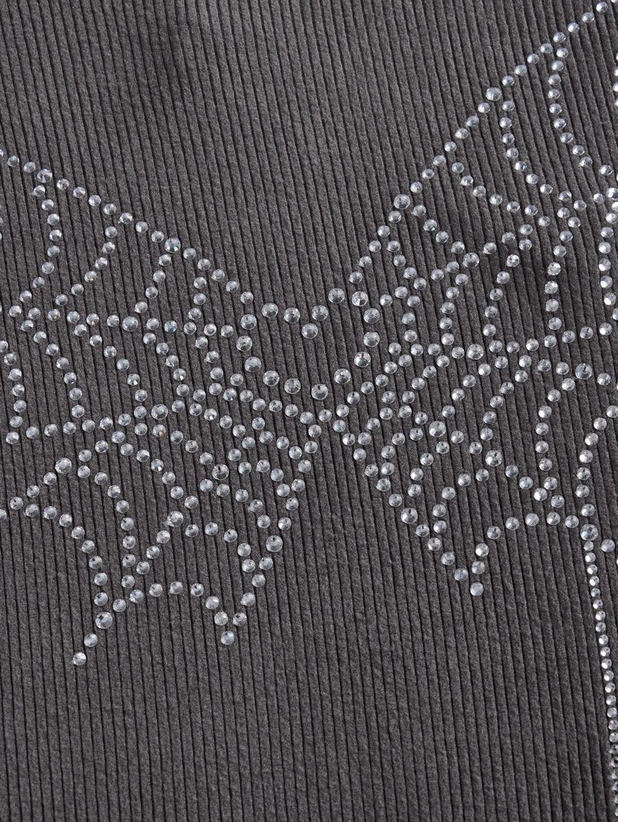 Rhinestone Heart Pattern High Neck Long Sleeve T-shirt