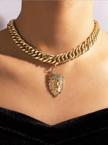 Rhinestone Lion Chain Necklace