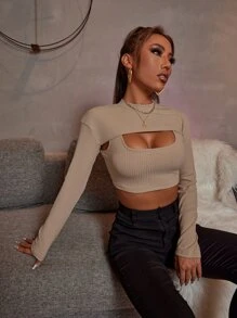 Ribbed Knit Super Crop Tee & Tank Top