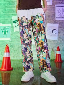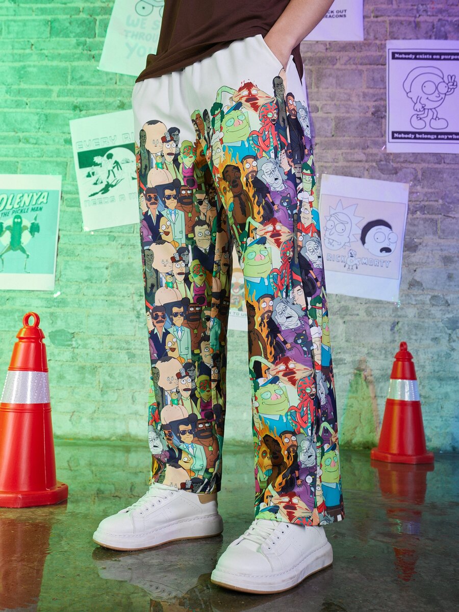 Rick and Morty | ROMWE Guys Figure Graphic Drawstring Waist Pants