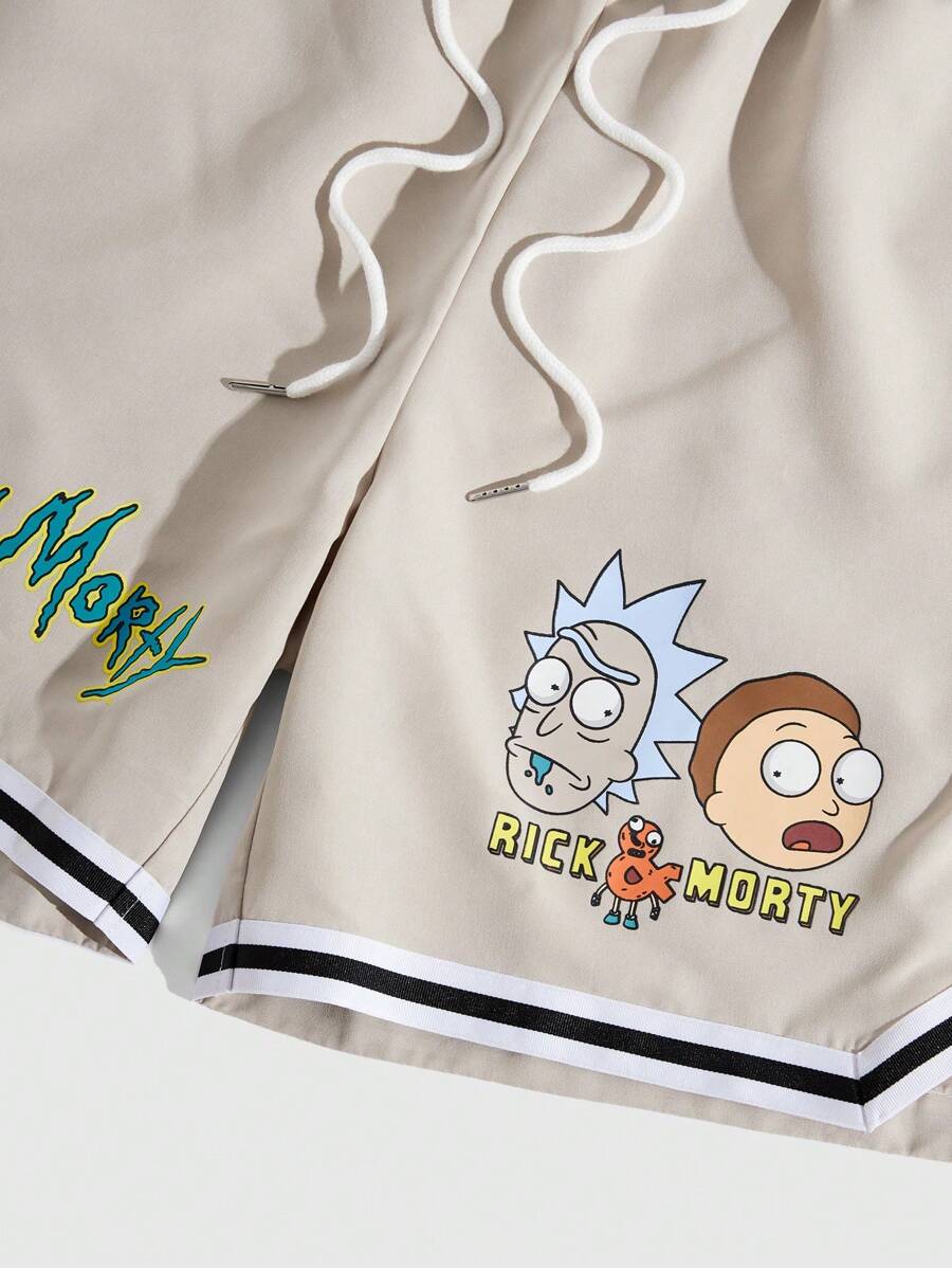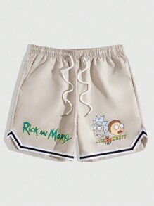 Rick and Morty | ROMWE Men Cartoon And Letter Graphic Striped Tape Hem Shorts, School