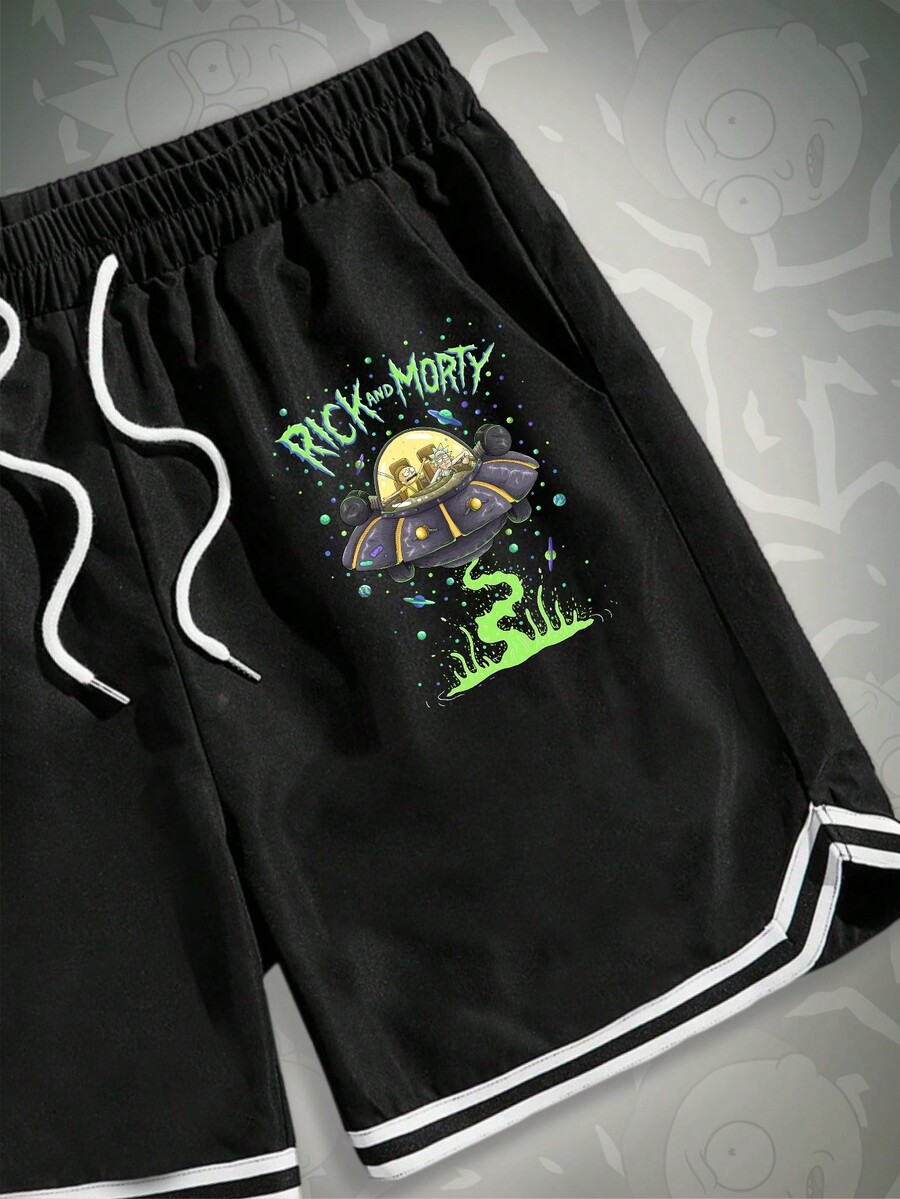 Rick and Morty | ROMWE Men Cartoon Print T-Shirt And Shorts Set, Suitable For Daily Wear In Spring/Summer