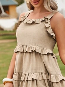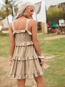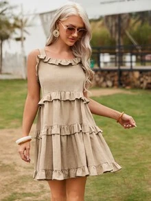 Ruffle Trim Layered Hem Dress Ruffle Dress