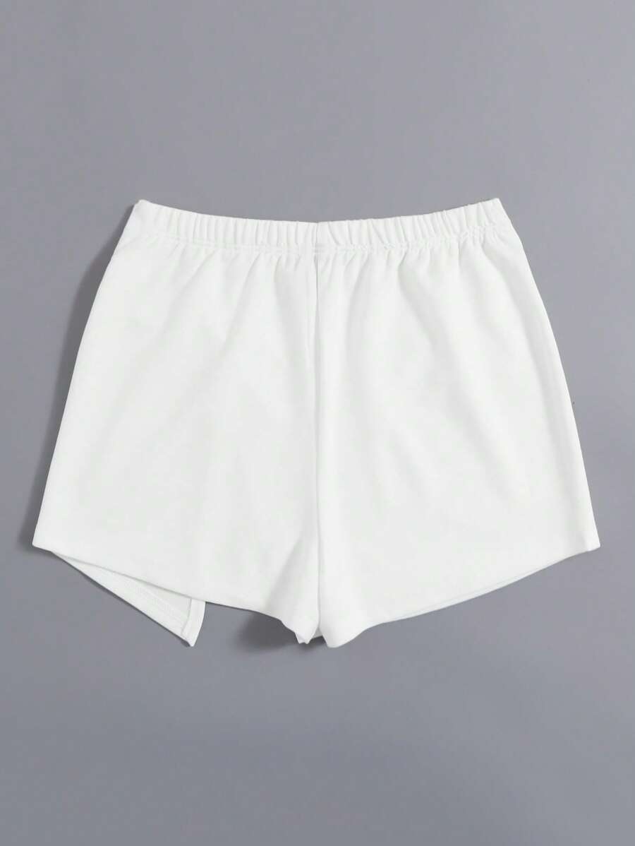 SHEIN Short-Saia Com Cintura Elástica E Fenda Frontal White Summer White