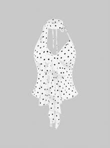 Sexy Y2K Polka Dot Chiffon Full Print Ruffle Edge Design With Neck Band Ladies Tank Top