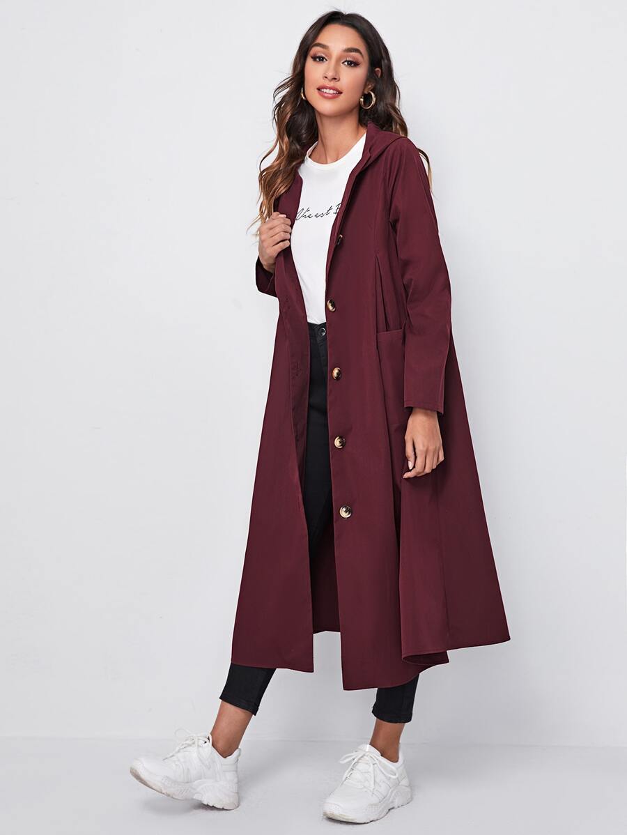 Single Breasted Patch Pocket Hooded Coat