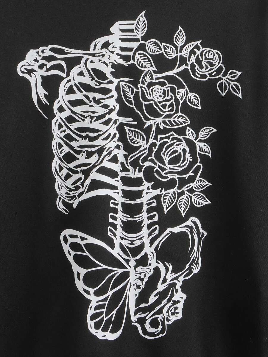 Skeleton & Butterfly Graphic Drawstring Hoodie