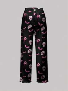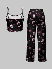 Skeleton Cross All-Over Print Halloween Gothic Sleeveless Jumpsuit Loungewear Set