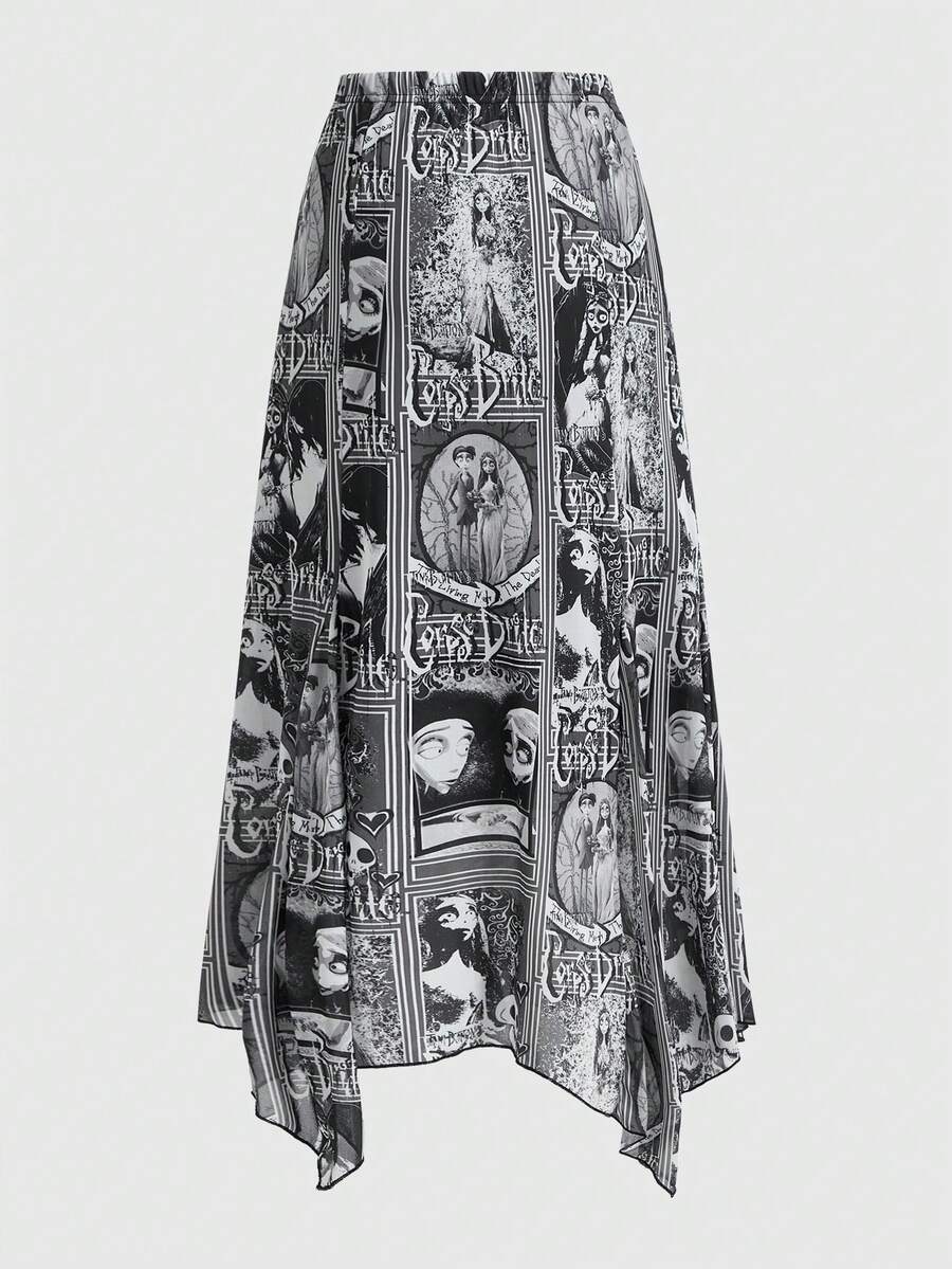 Corpse Bride | ROMWE Skull Print Hanky Hem Skirt