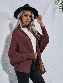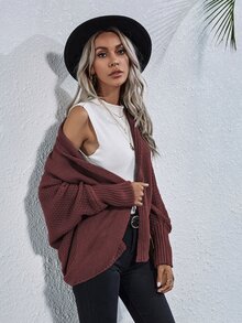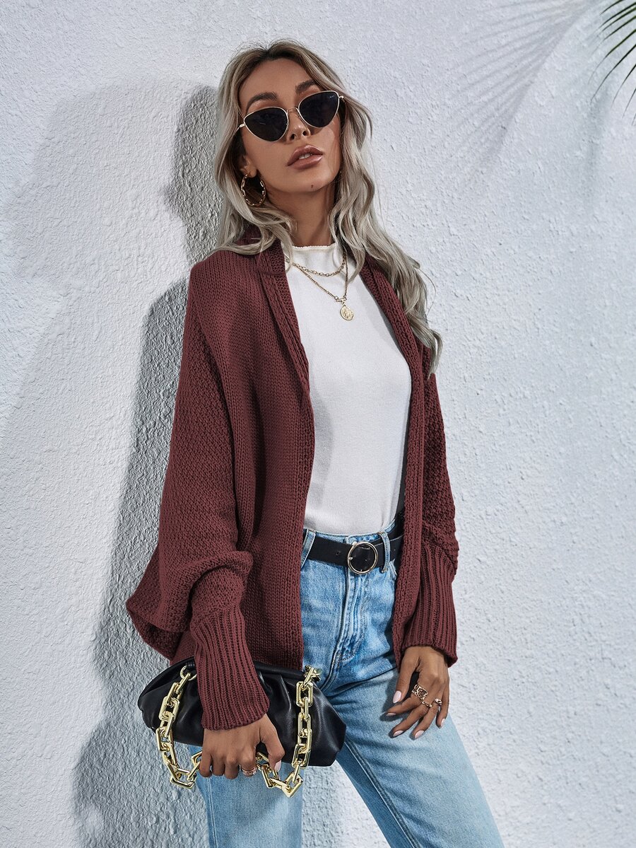 Solid Batwing Sleeve Cardigan