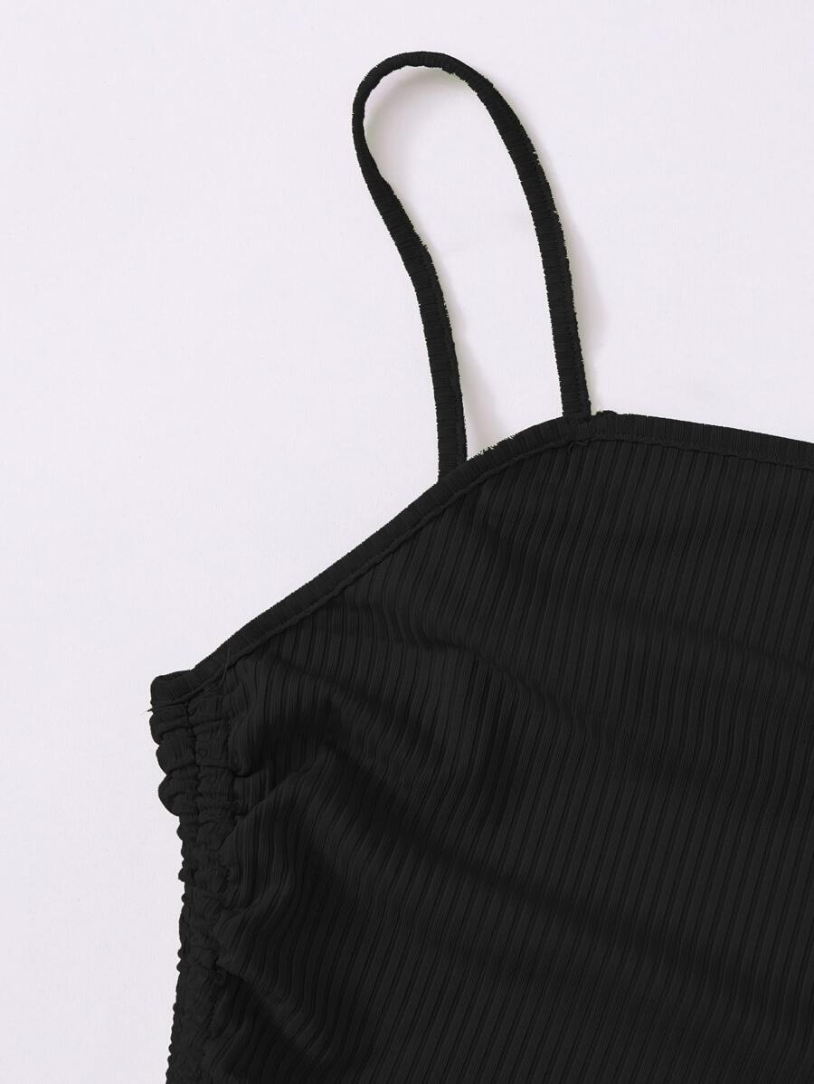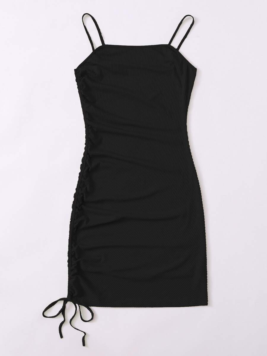 Solid Drawstring Detail Rib-knit Bodycon Dress