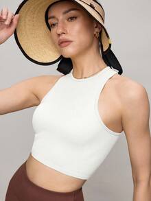 Solid Racer Back Crop Sports Tank Top Fitted Shirt