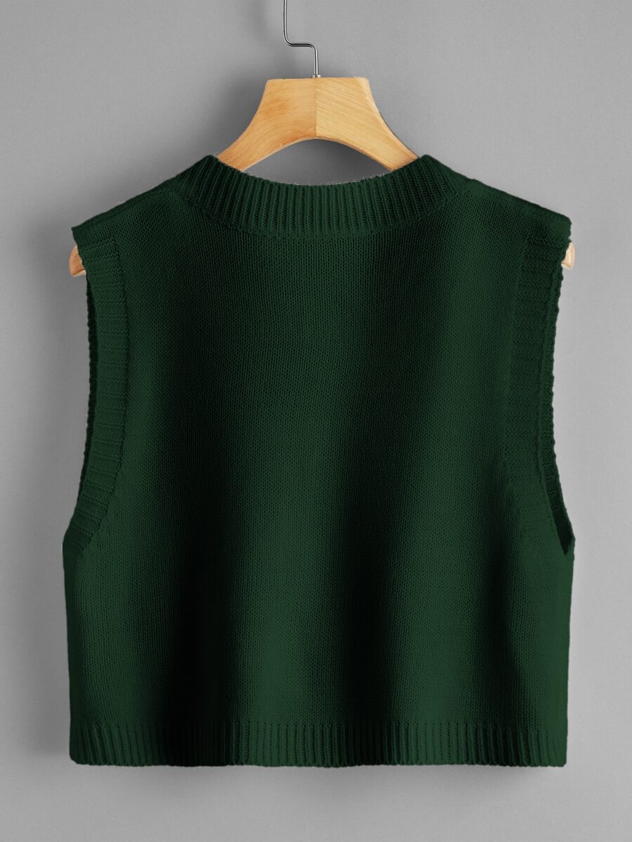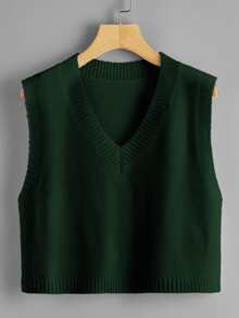 Solid V-Neck Cropped Sweater Vest