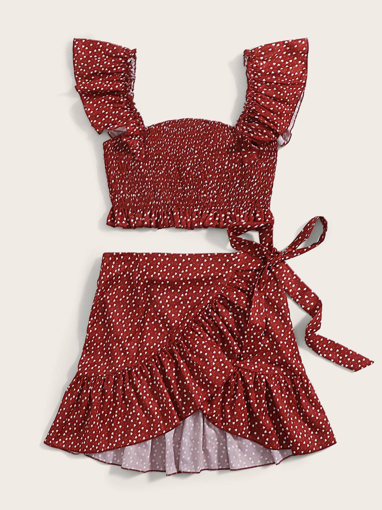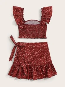 Speckled Smocked Crop Top & Mini Wrap Skirt Set