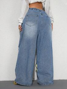 Street Life Spring / Summer Y2K Casual Street Style Embroidered Pocket Design Dual Waistband Plus Size Loose Fit Denim Jeans