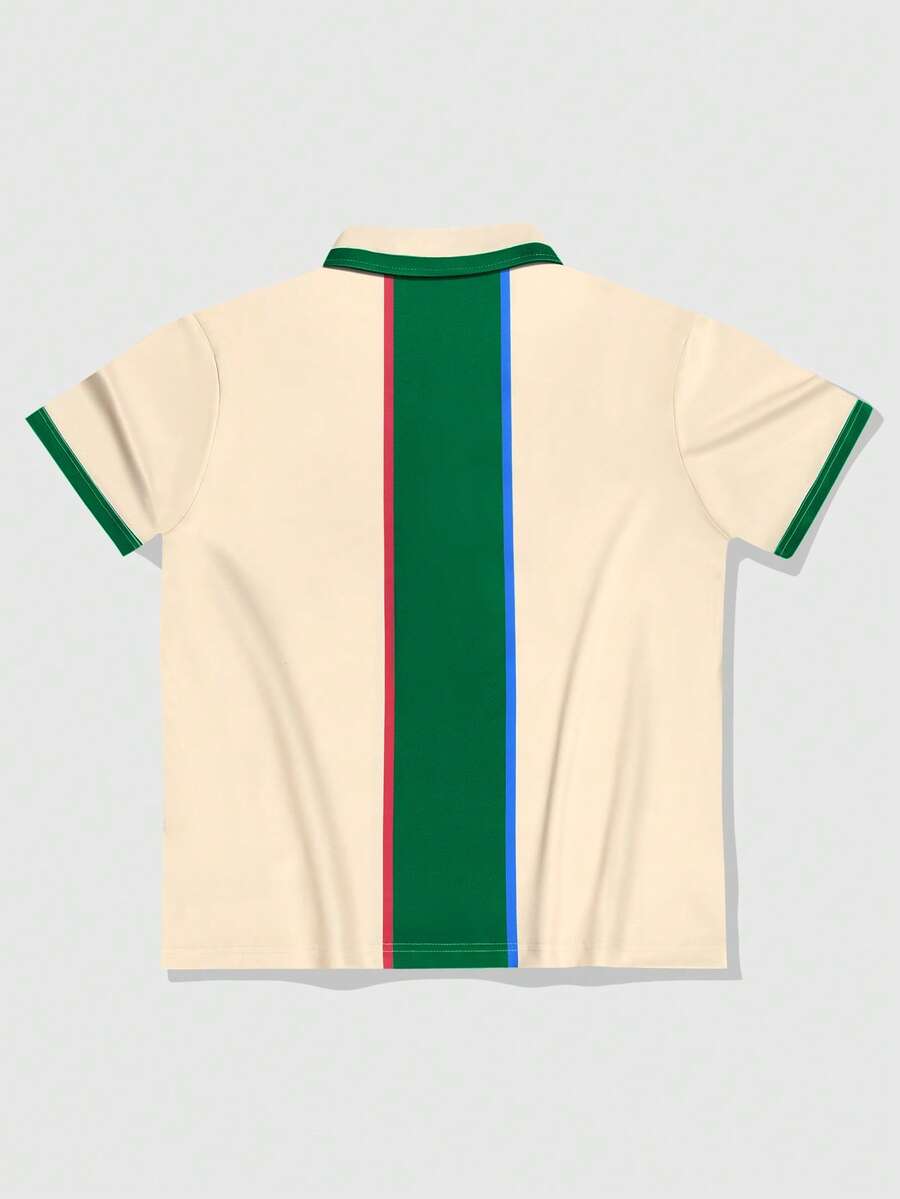 Prep Spring/Summer Casual Graphic Men'S Colorblock Letter Print Casual Versatile Short Sleeve Polo Shirt