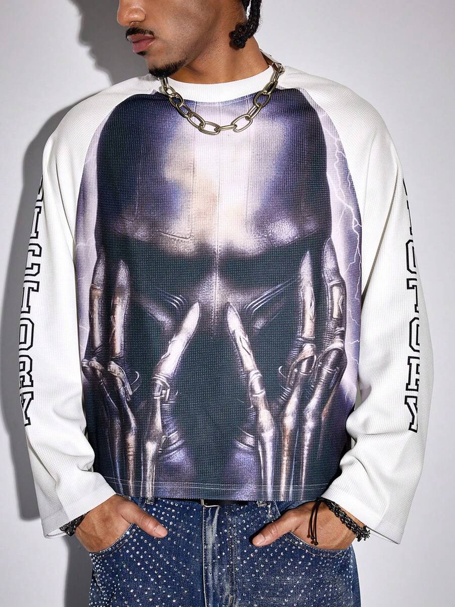 Street Life Spring/Summer Casual Graphic Men'S Contrast Color Raglan Sleeve T-Shirt With Dark Character Print