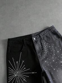Street Life Spring/Summer Casual Graphic Men'S Contrast Color Rhinestone Pocket Fashionable Versatile Casual Commuting Denim Shorts