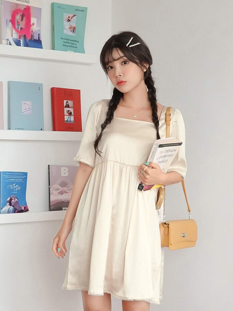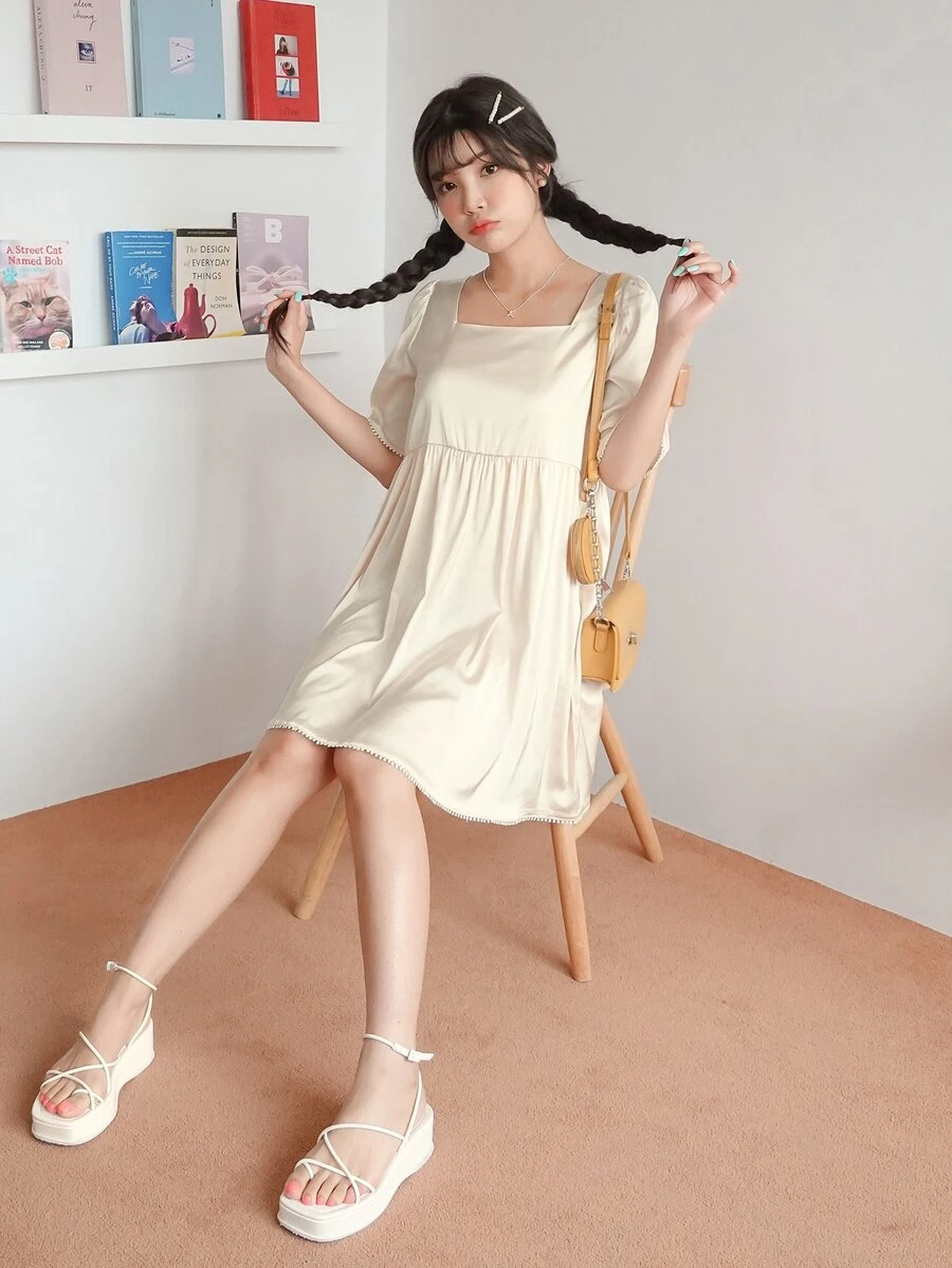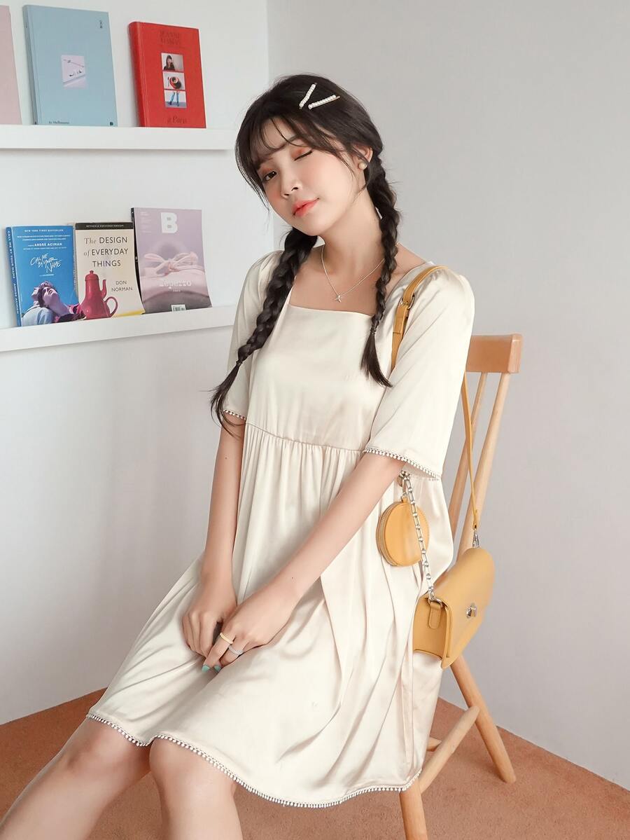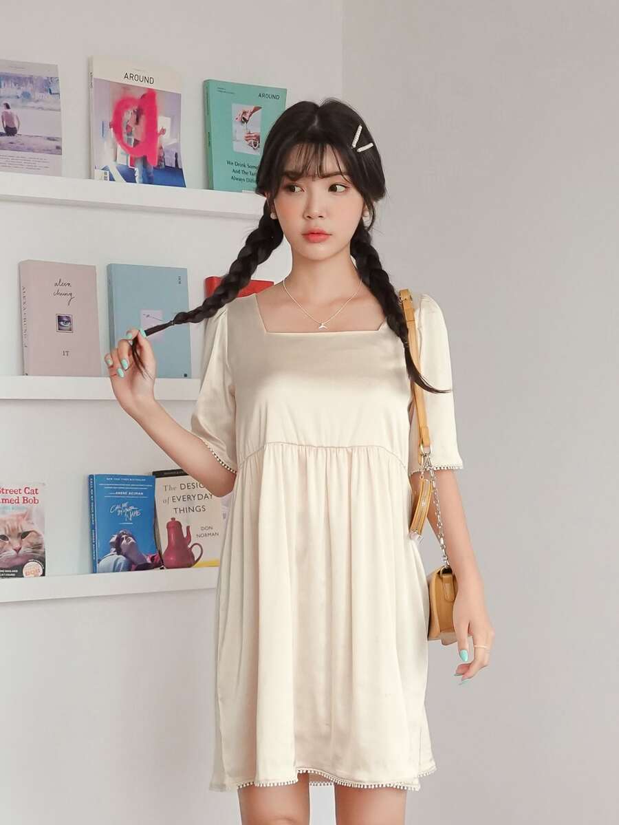 Square Neck Smock Dress