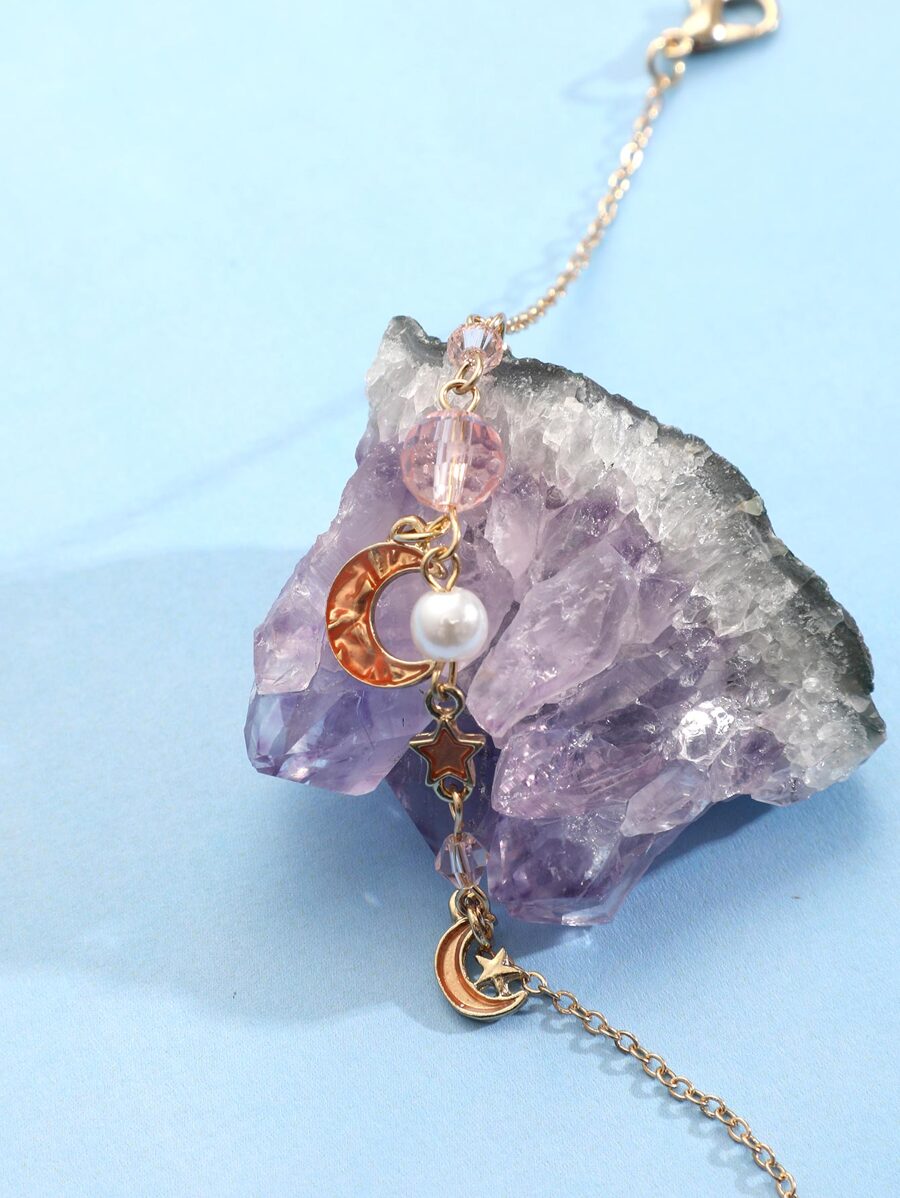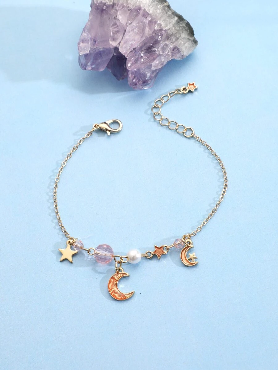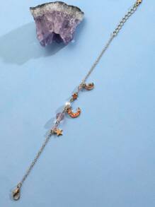 Star & Moon Charm Faux Pearl Decor Bracelet
