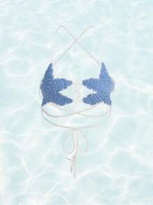 Star Pattern Crisscross Tie Backless Halter Knit Top