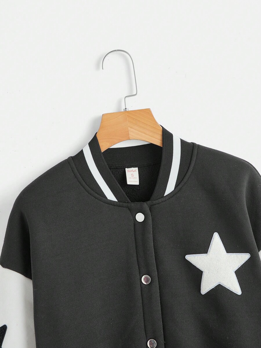 Star Print Drop Shoulder Two Tone Varsity Jacket