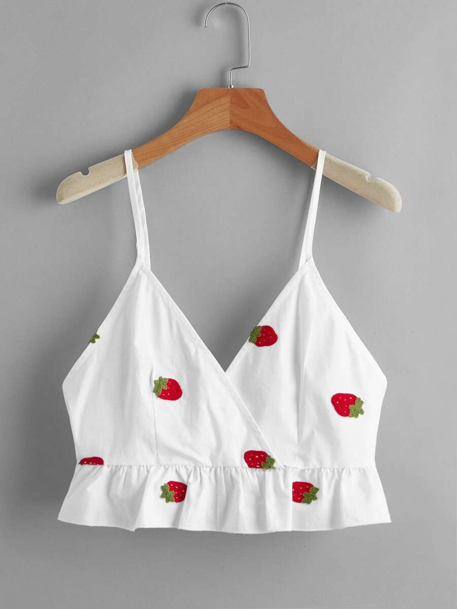 Strawberry Embroidery Wrap Crop Cami